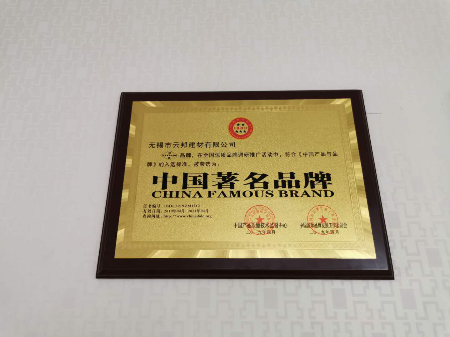 中國著名品牌證書